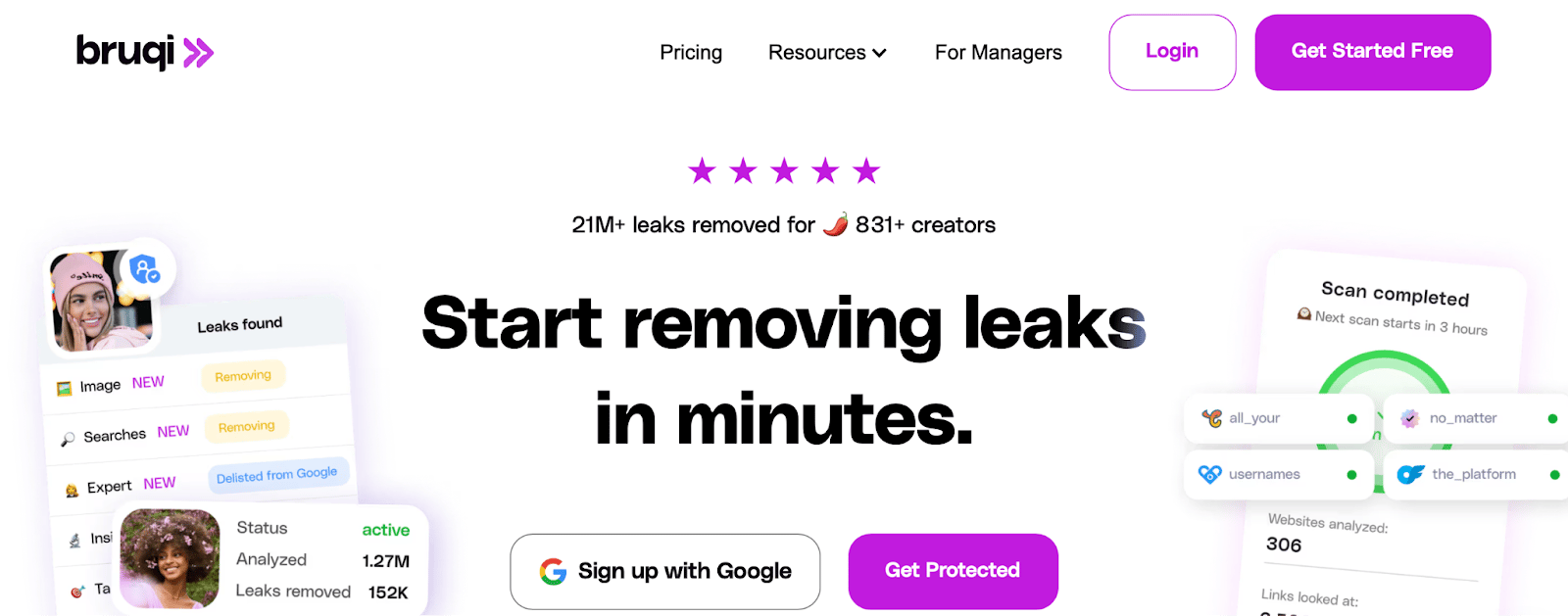Leak removal speed: Results in 60 minutes for most platforms. Google removal approval in hours, with content removed in 3-5 days.
