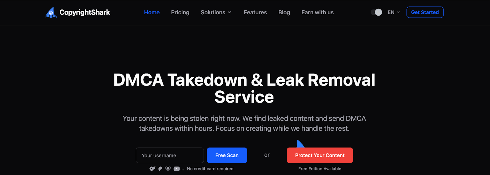 CopyrightShark scans 12,000+ sites daily with unlimited usernames and unlimited removals. They use automated scanners with facial recognition plus manual verification. Their interface shows actual links being removed, not just totals. You see exactly what was found, where it's hosted, and its removal status.
